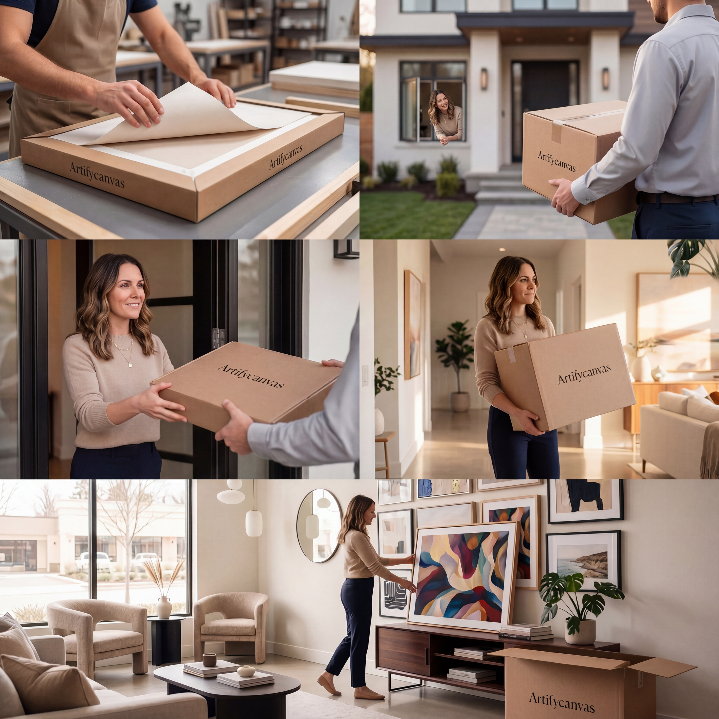 Zodra uw kunstwerk is afgedrukt, wordt het zorgvuldig verpakt en rechtstreeks bij u thuisbezorgd – klaar om op te hangen, cadeau te geven of te bewonderen.
